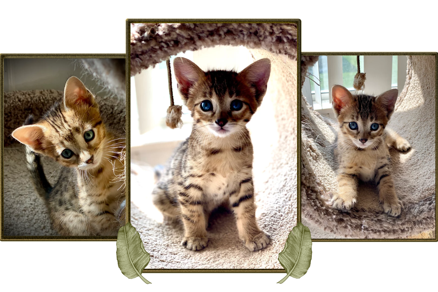 The Kittens excel at being used for either companionship, therapy, service animals. or loved family member. These Kittens are extremely intelligent and love to learn. Take a look at our currently available Kittens on our Available Kittens page. Please also take a few minutes to see past Kittens and candid photos from Spotted Savannah on the GalleryPage. Visit Breed information for more information regarding the origin of this magnificent breed.