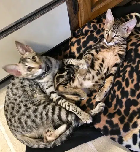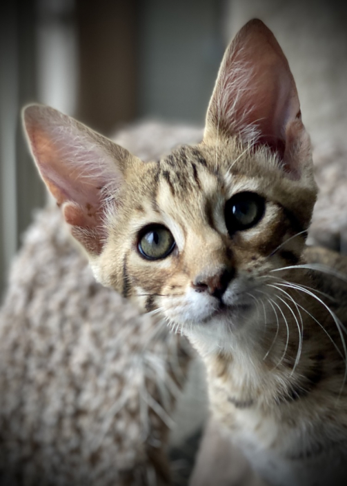 Our cats are members of our family and the Kittens are raised in our home from the time they are born to the time they go to their new families. Kittens from Spotted Savannah are bred to possess and exhibit the temperament and personality to assure a positive new addition to your family. Males and Females from this breed of cats exhibit very similar qualities and temperaments. Please be open to either gender when asking for your new Kitten … this will shorten the length that you might expect to wait for a kittens from Spotted Savannah. This will also help us to place our kittens based on the type of lifestyle you might have from the questions asked in our Kitten Application. We take pride in matching Kittens up with families based on temperament, activity levels and all of the considerations involved with the adoption.